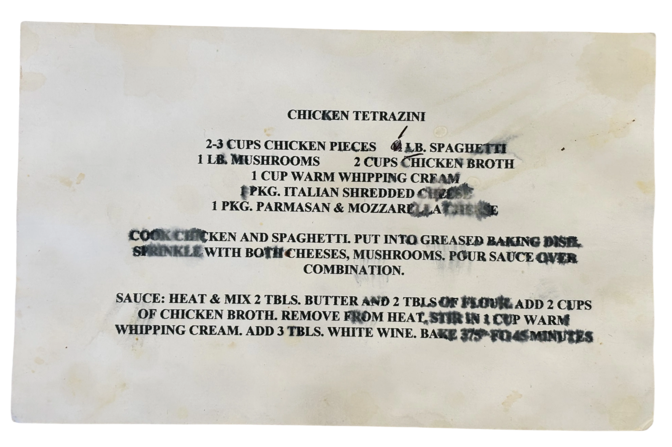 - Cook chicken and spaghetti. Put into greased baking dish.