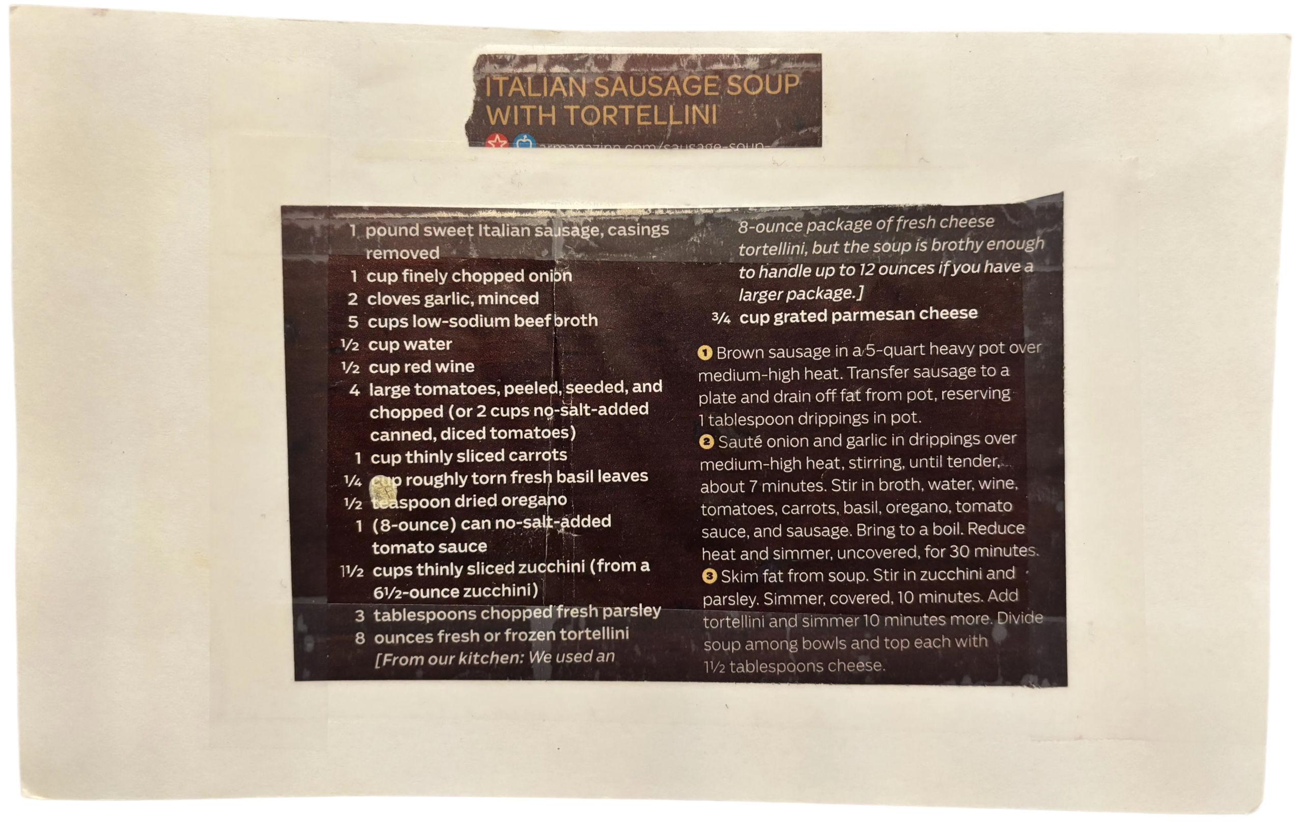 Italian Sausage Soup with Tortelini Posted on January 4, 2026January 4, 2026 by ourrecipecards_hkt787 Italian Sausage Soup with Tortelini Print Recipe Pin Recipe Course SoupCuisine Italian